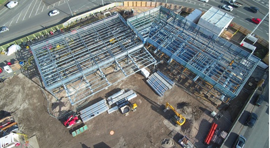 Duties then moved to a checking role, monitoring and inspecting the works as they proceeded and ensuring any issues where identified early and appropriate corrective action taken. This involved pre pour checks on the foundations utilising Site Engineering Guide Forms, checking holding down bolts, Plumb Line and Level of the steelwork and both pre pour inspections of the ground floor slabs and upper floors composite slabs.